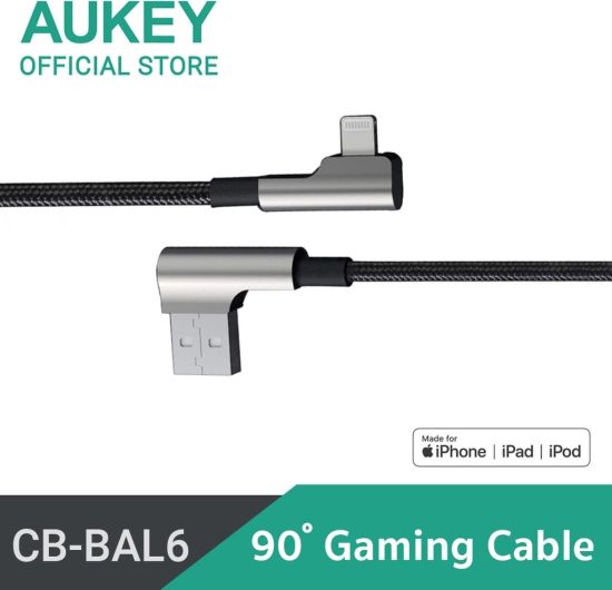 Met deze haakse lightning kabel kun je makkelijk je iPhone of iPad gebruiken terwijl deze aan de lader ligt! Zo kun je urenlang gamen op je iPad terwijl deze wordt opgeladen. De 90-graden MFI lightning kabel van Aukey is verstevigd met gevlochten Nylon, waardoor deze onzettend duurzaam is. Met deze kabel kun je snelladen en ook gebruiken voor het overdragen van data.
